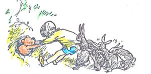 “It all comes,” said Rabbit sternly, “of eating too much. I thought at the time,” said Rabbit, “that one of us was eating too much,” said Rabbit, “and I knew it wasn’t me,” he said. “Well, well, I shall go and fetch Christofer Robin.”